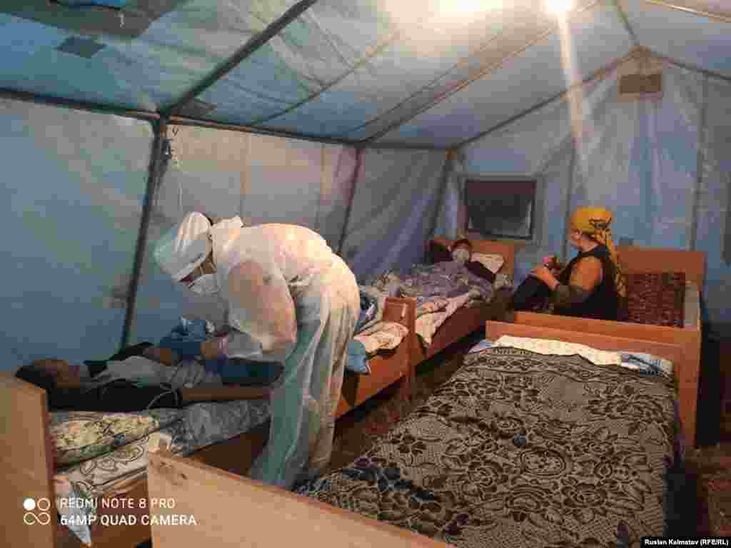 Токтогул шаарындагы үй-бүлөлүк медицина борборунун алдында эки чатырда жайгашкан 12 орундук стационар.